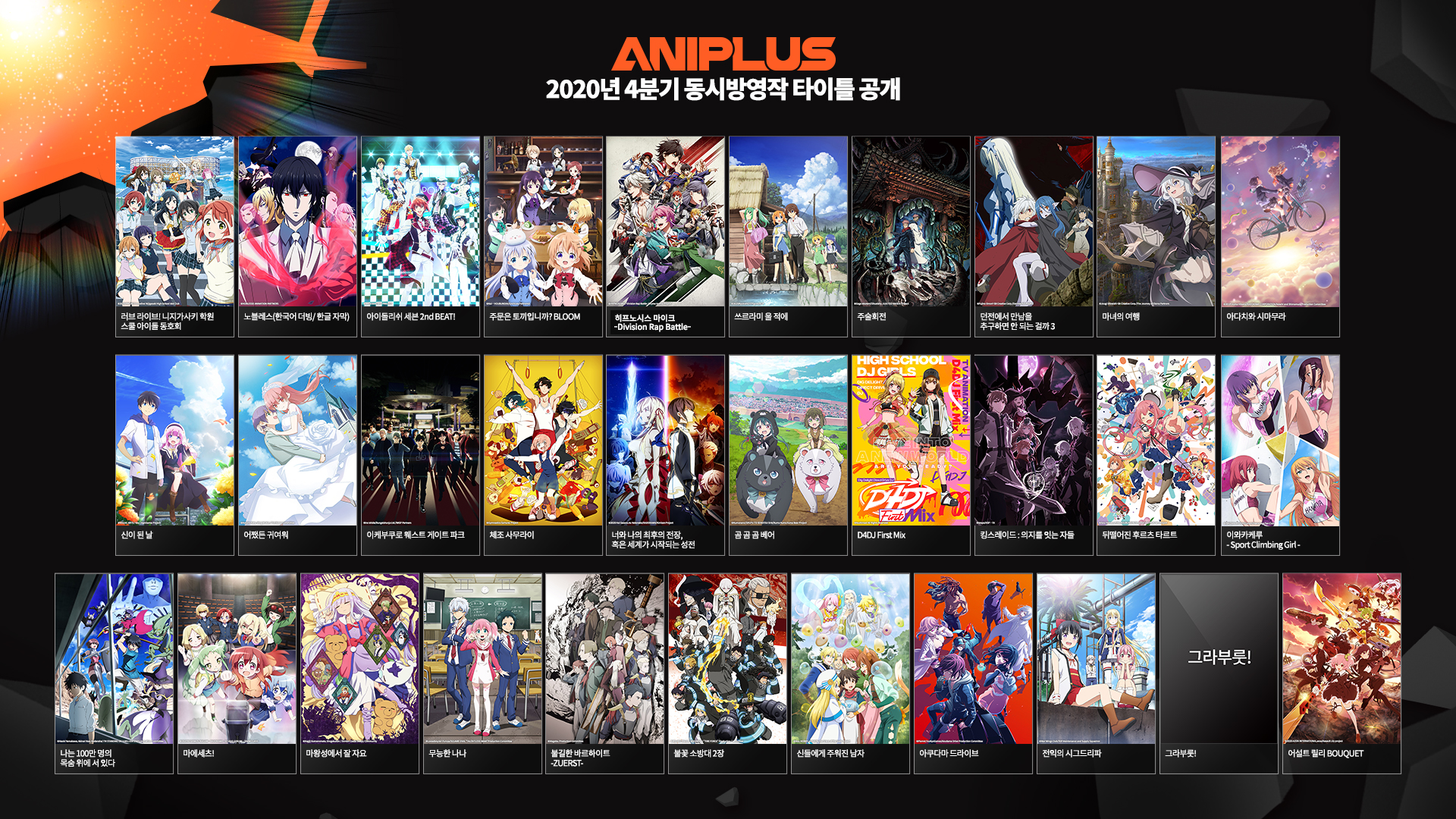 우선 애니플러스에서 방영되는 신작들 리스트입니다.