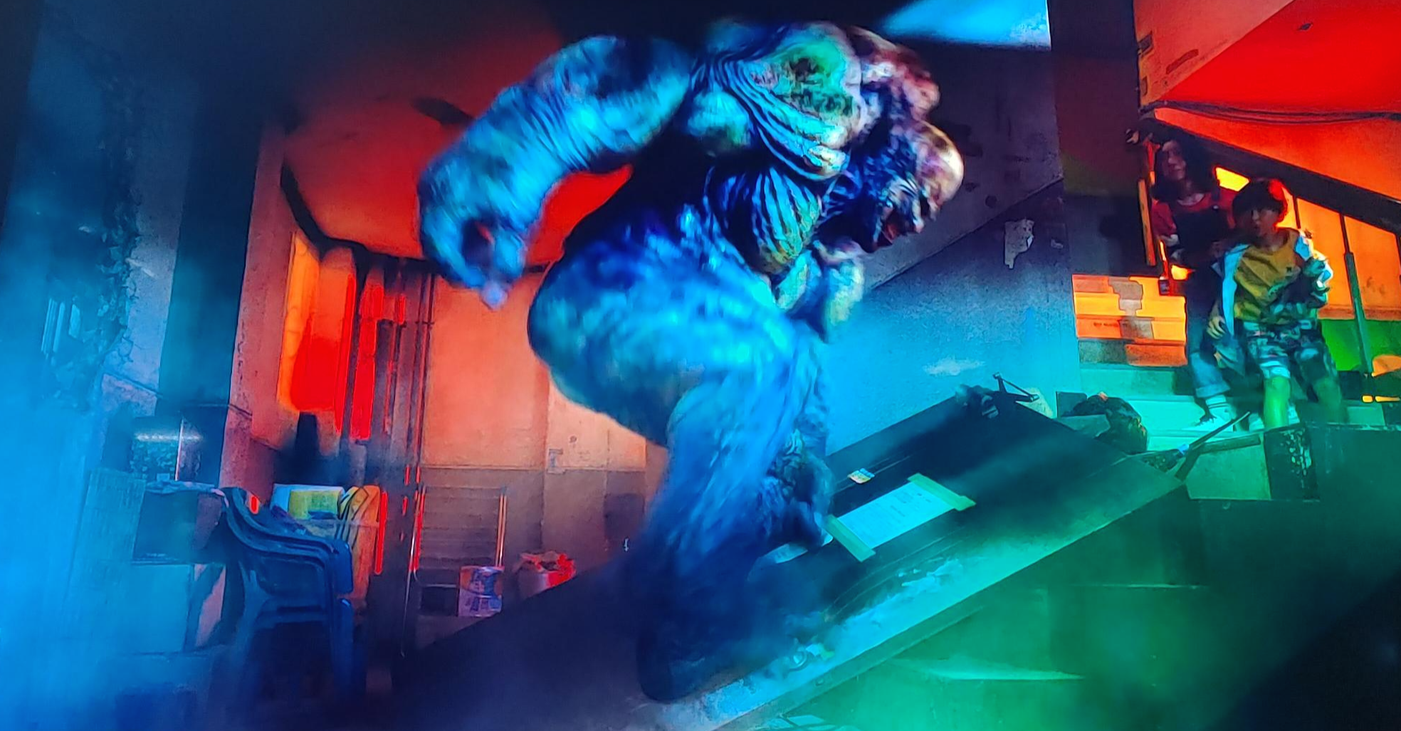 그런데 갑자기 아파트에서 이상한 괴물로 변하는