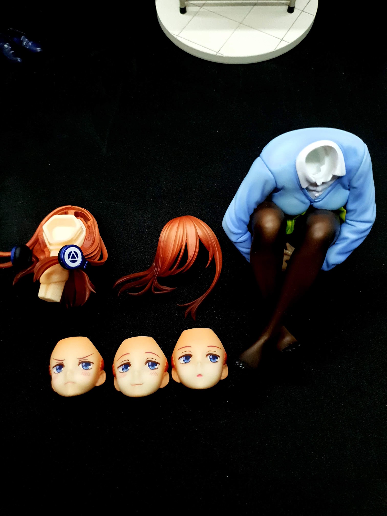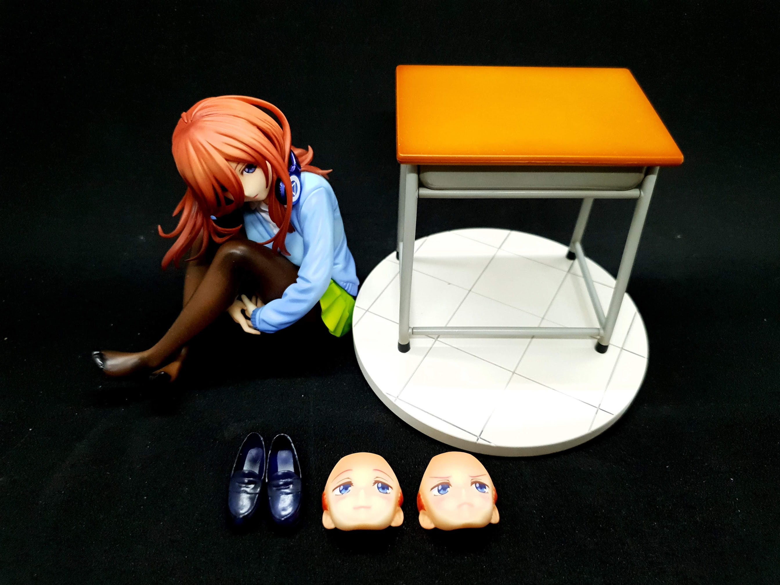 미쿠 본체, 얼굴 파츠 2개, 구두, 그리고 받침대로