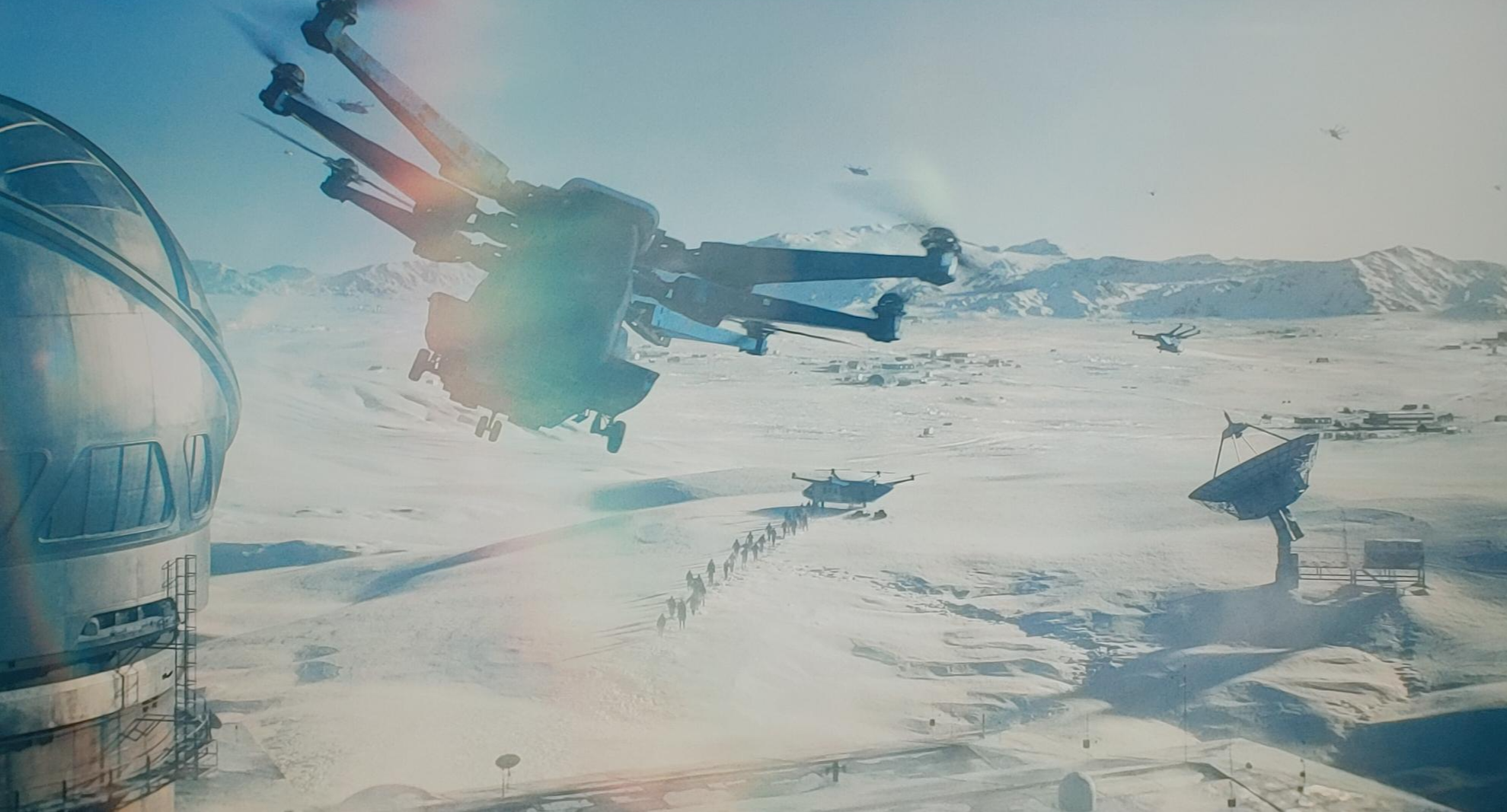 미래의 북극 기지와 우주선 내부의 세트도