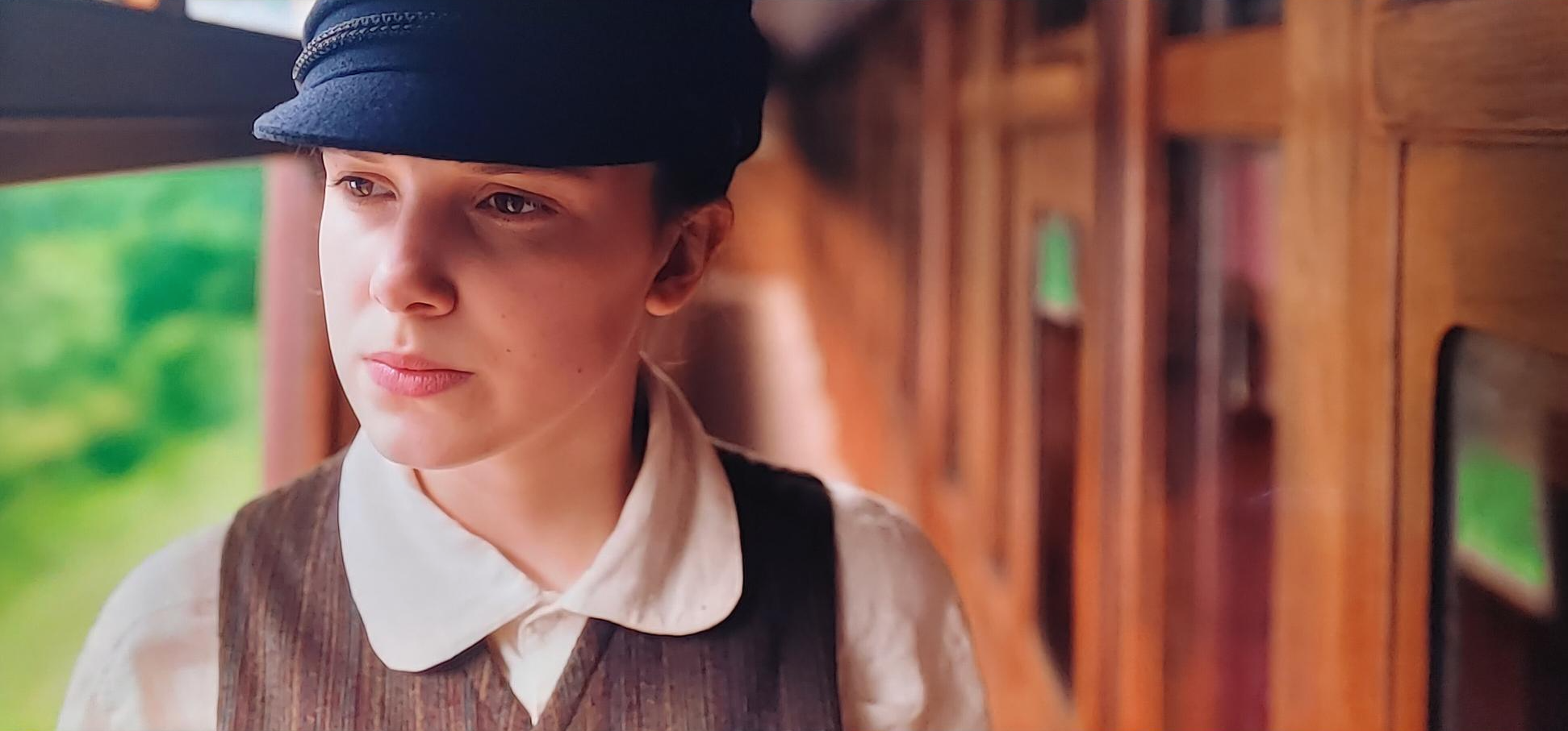 튜크스베리를 구하고 같이 런던으로 향하는 에놀라 홈즈.
