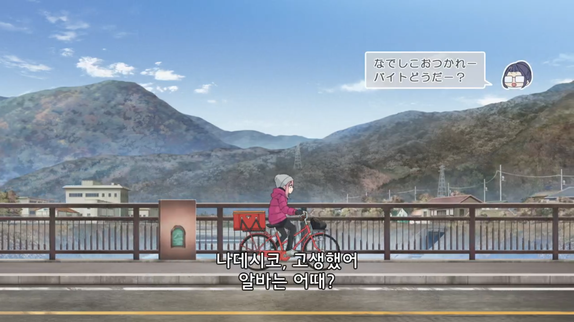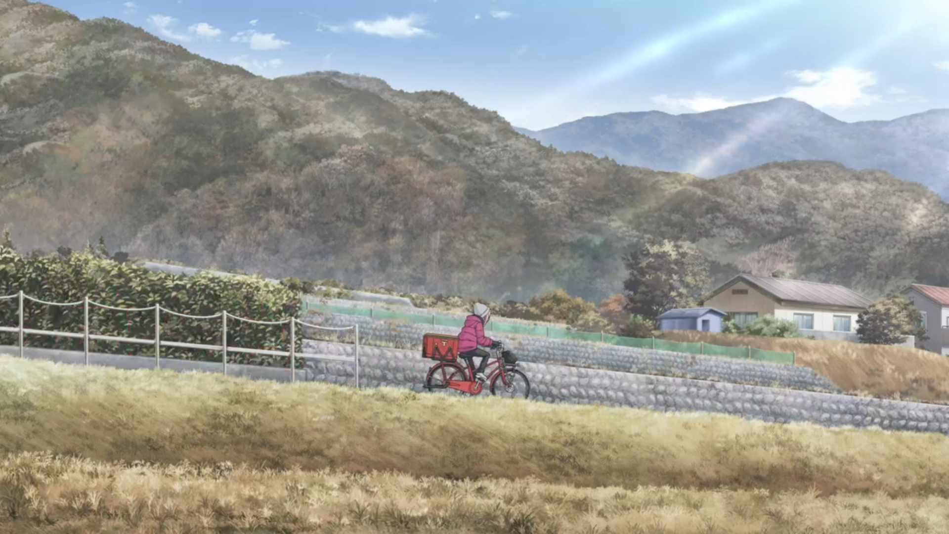 나데시코가 자전거를 타고 가는 장면도
