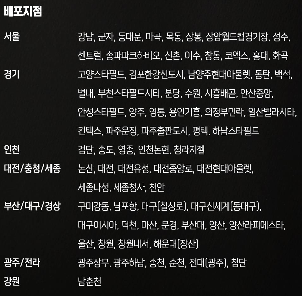 특전 이벤트를 제공하는 상영관은 다음과 같습니다.