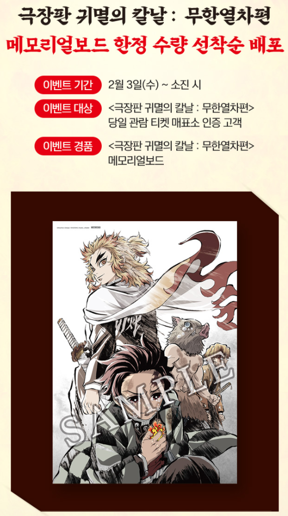 귀멸의 칼날 롯데시네마 변경된 신규 특전 이벤트!! (2/6~)