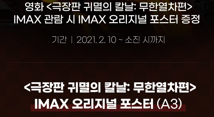 귀멸의 칼날 메가박스 3주차 이벤트! - 렌고쿠 캘린더 2021 증정! (0) | 2021.02.04 |