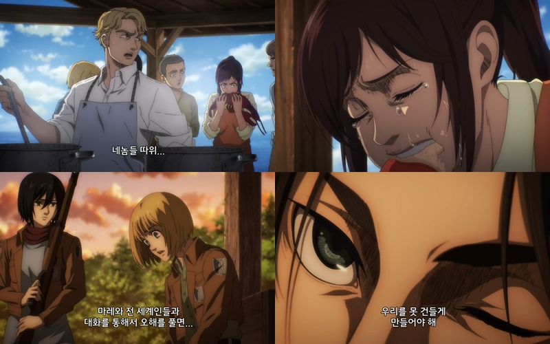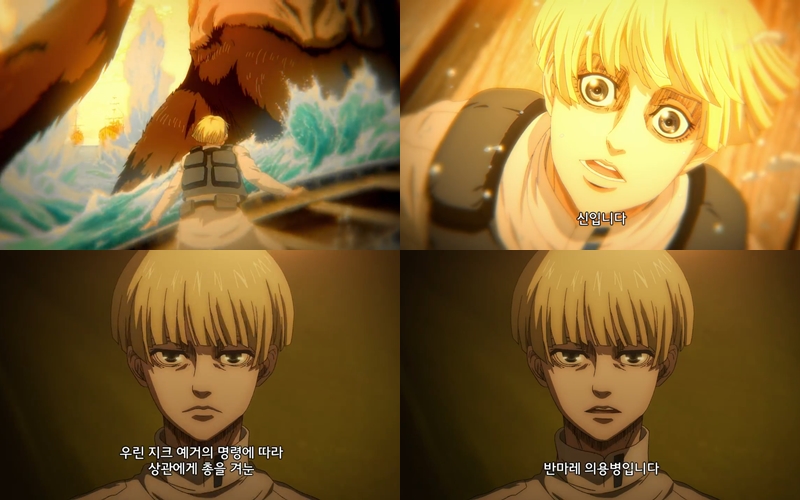 안녕하세요? 진격의 거인 4기 8화 리뷰입니다. 8화의 제목이 '흉탄'이었는데요. 역시 예상했던대로, 그 흉탄에 사샤가 쓰러지고 말았습니다.. 사샤를 꼭 이렇게 보냈어야 했는지 아쉬움이 남는군