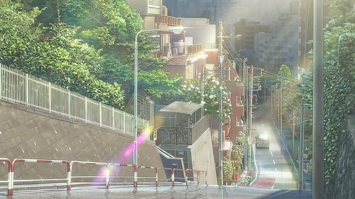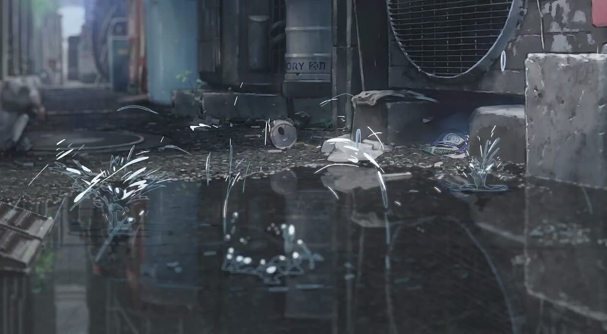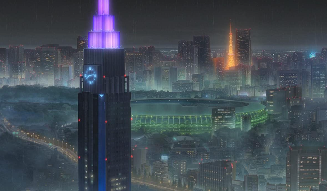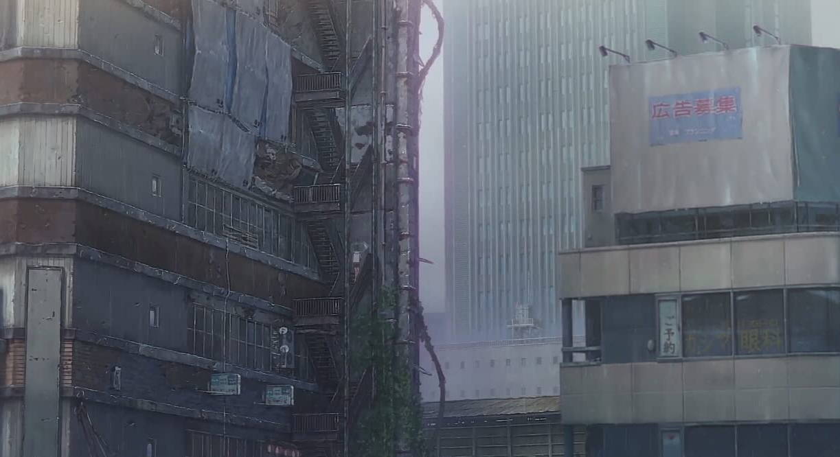 작품에서의 도쿄는 계속 비가 내리는 도시.