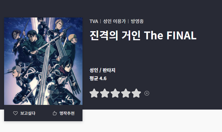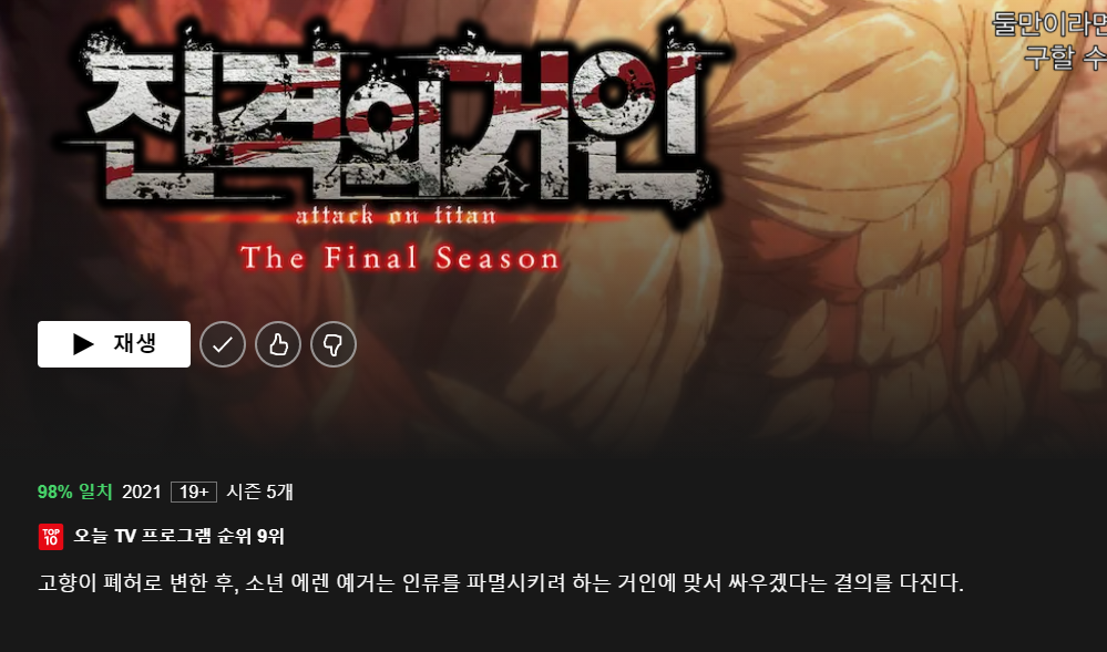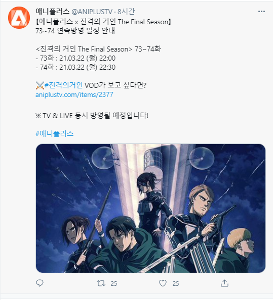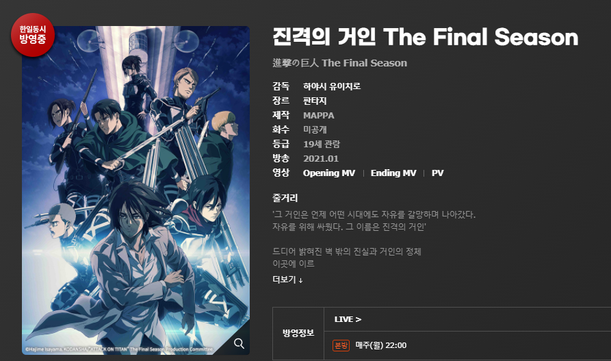 진격의 거인 4기 국내 판권사인 애니플러스에서