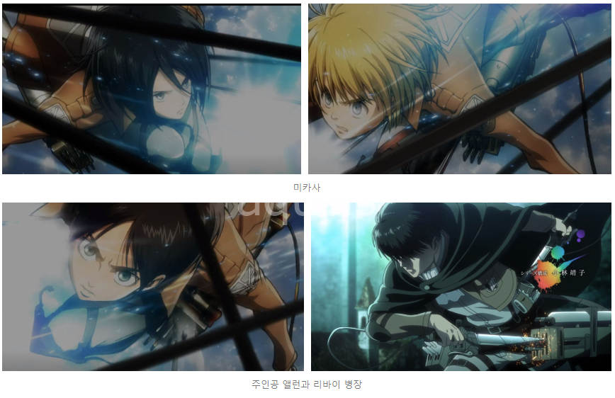 초반에는 미카사의 액션이, 후반에는 리바이 병장의