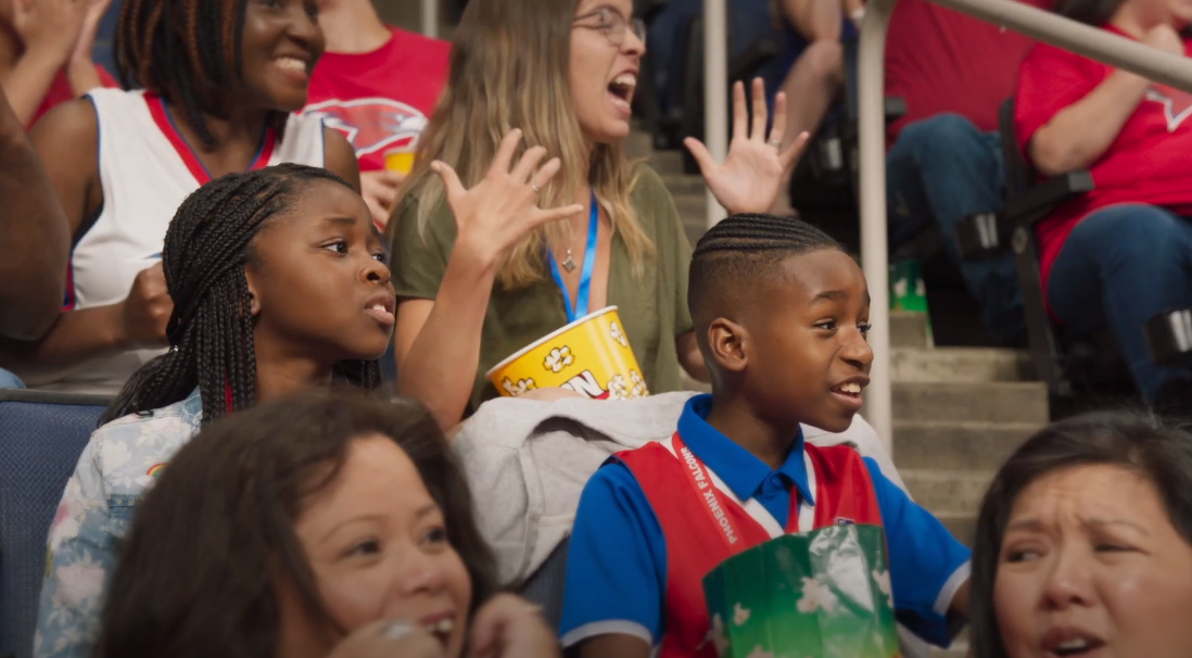 농구장을 찾습니다. 아이들은 경기장 견학 및