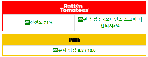 IMDB 평점은 6.2점, 로튼 토마토의 신선도 지수는
