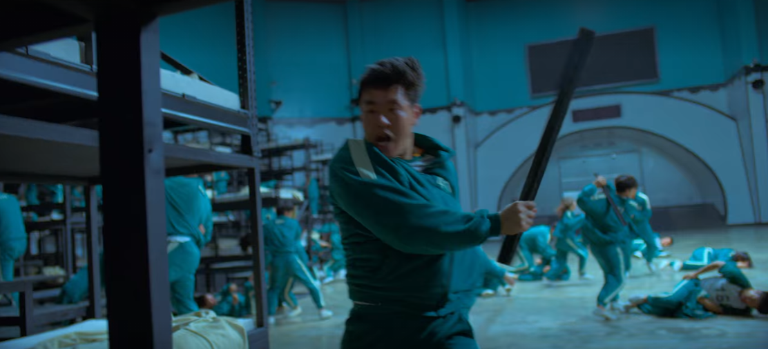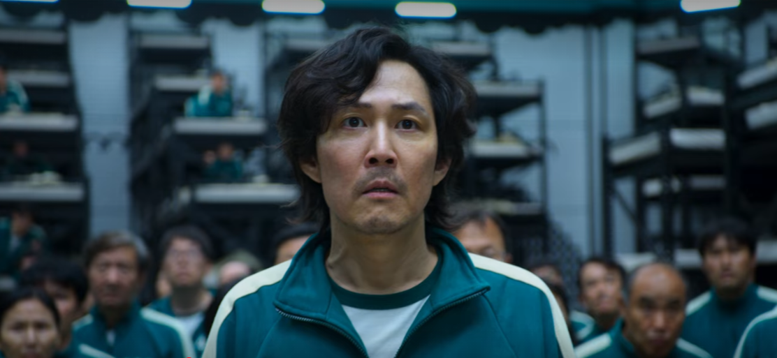주인공 성기훈(이정재 역)은 사채 빚까지 끌어다쓰는